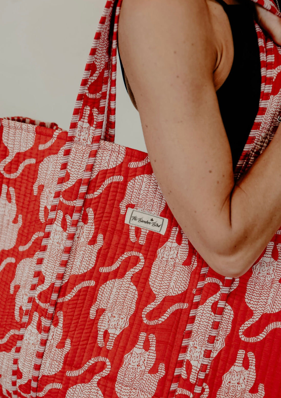 Red Tiger Quilted Tote Bag