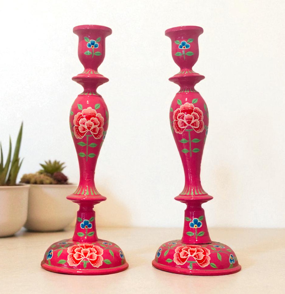 Bring artisanal beauty into your home with our hand-painted, wooden candlestick. Carefully crafted by skilled artisans in Kashmir, each piece is unique, showcasing traditional craftsmanship and intricate hand-painted detail.
