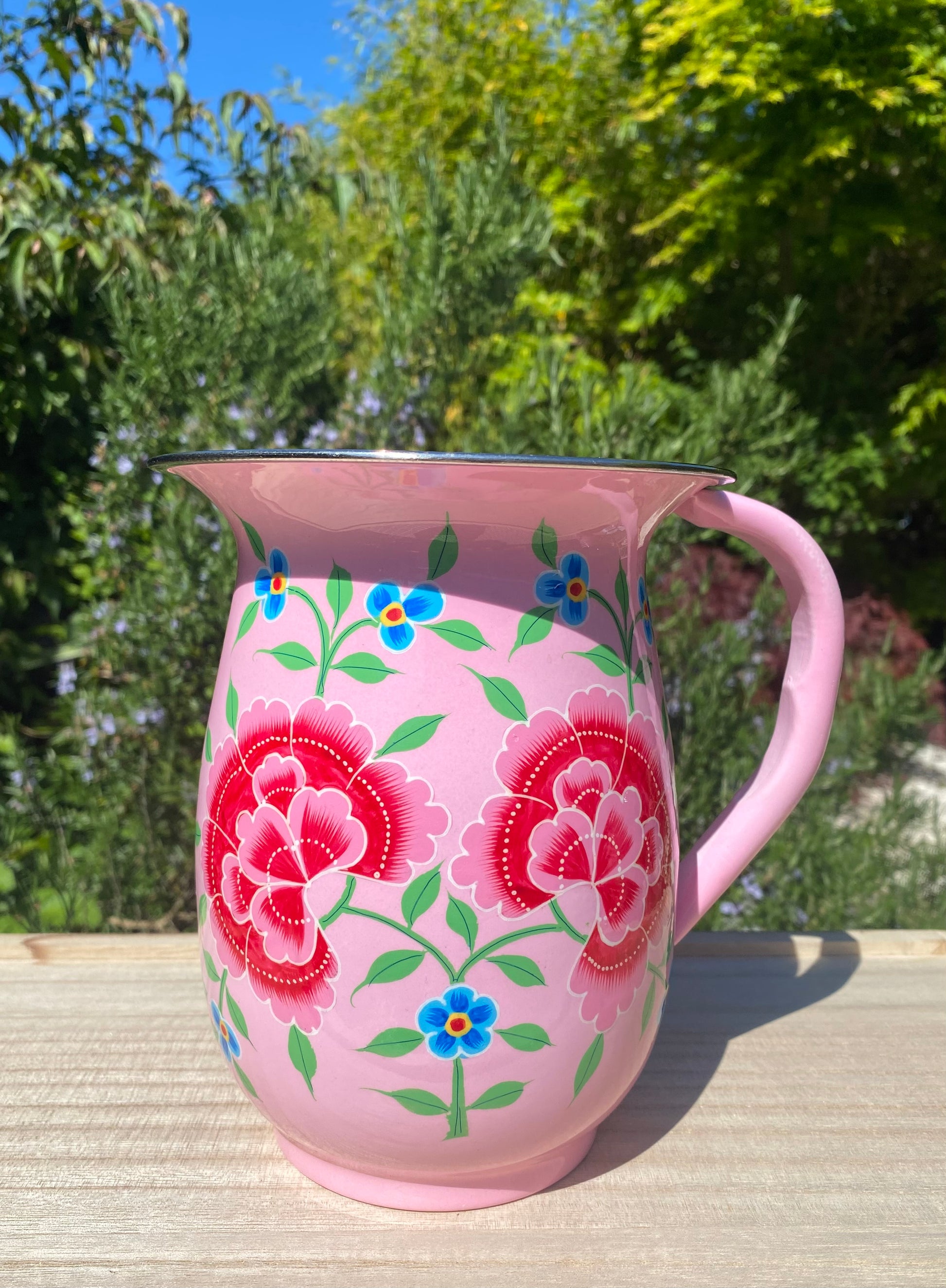 Stainless Steel and Enamel Jug from Kashmir - The Bamboo Bird