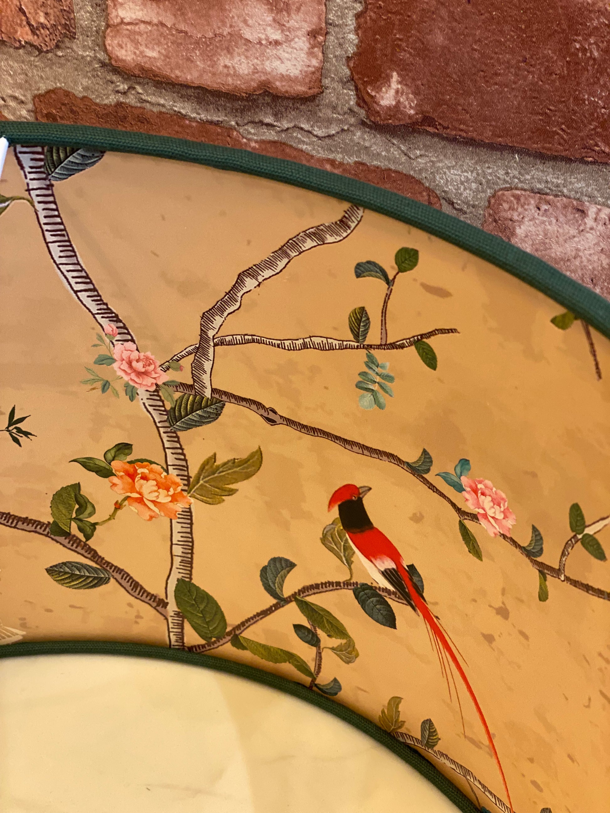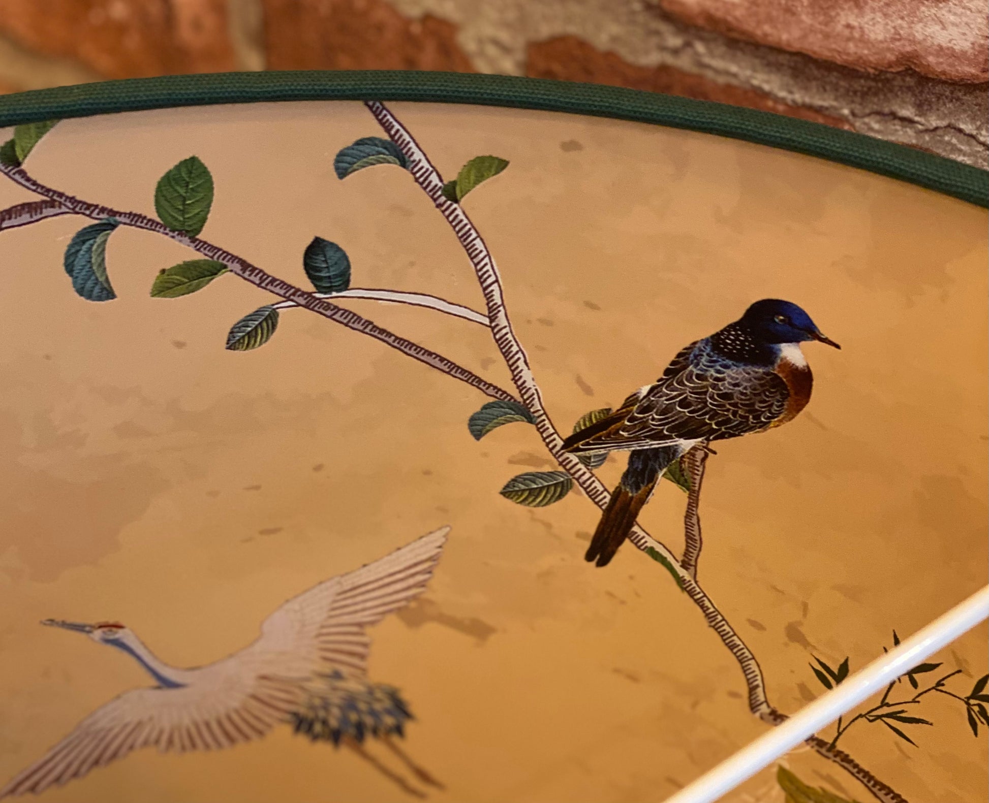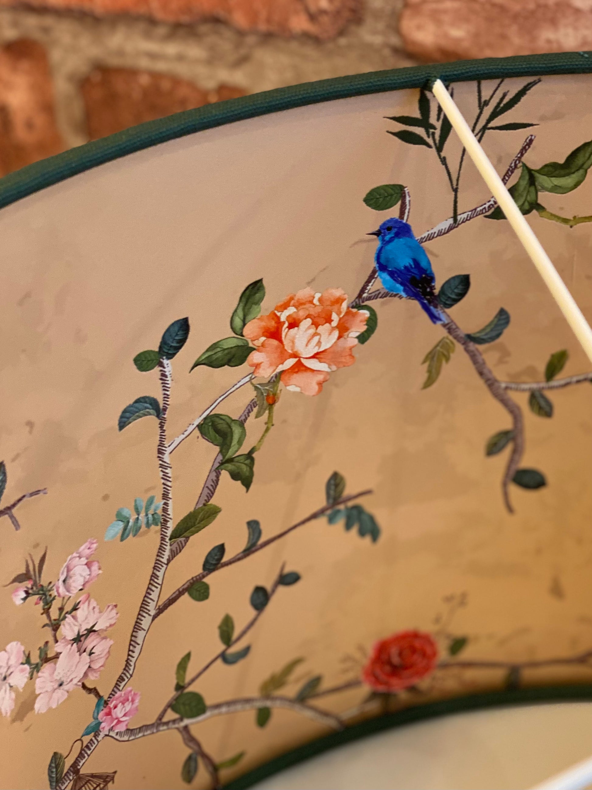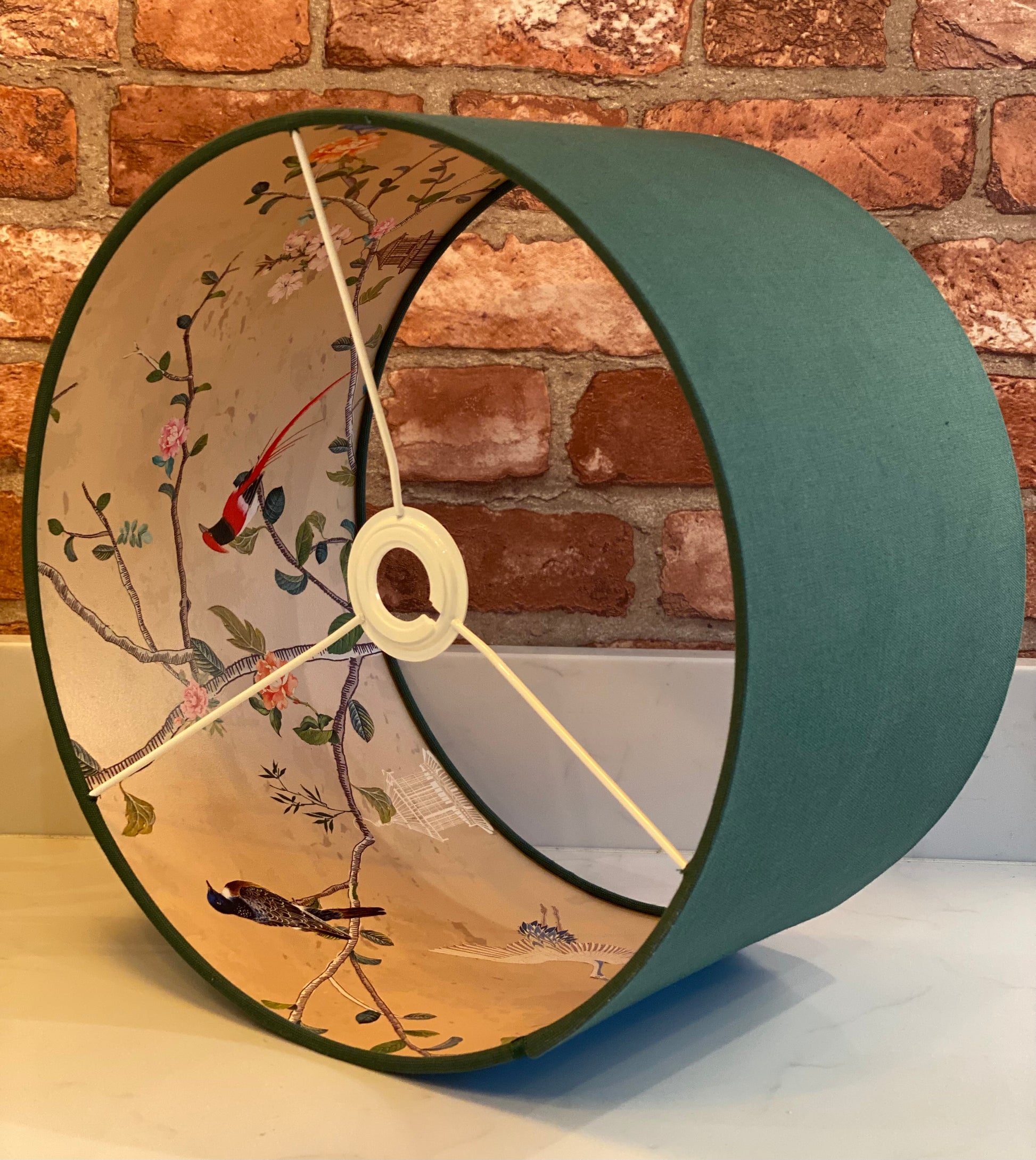 Dark Green Lampshade with Gold Chinoiserie Bird Lining