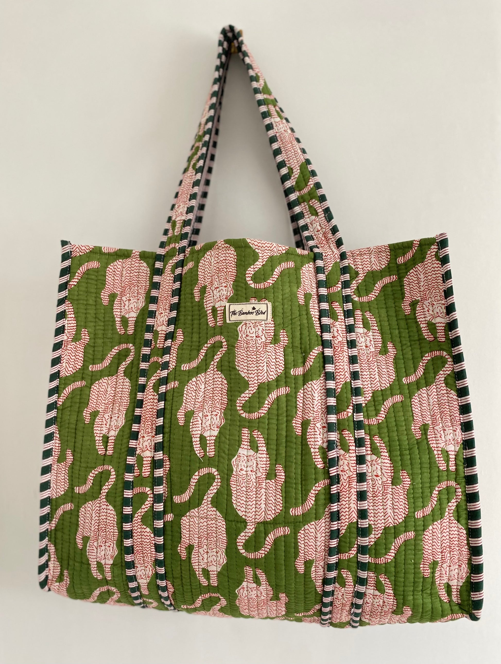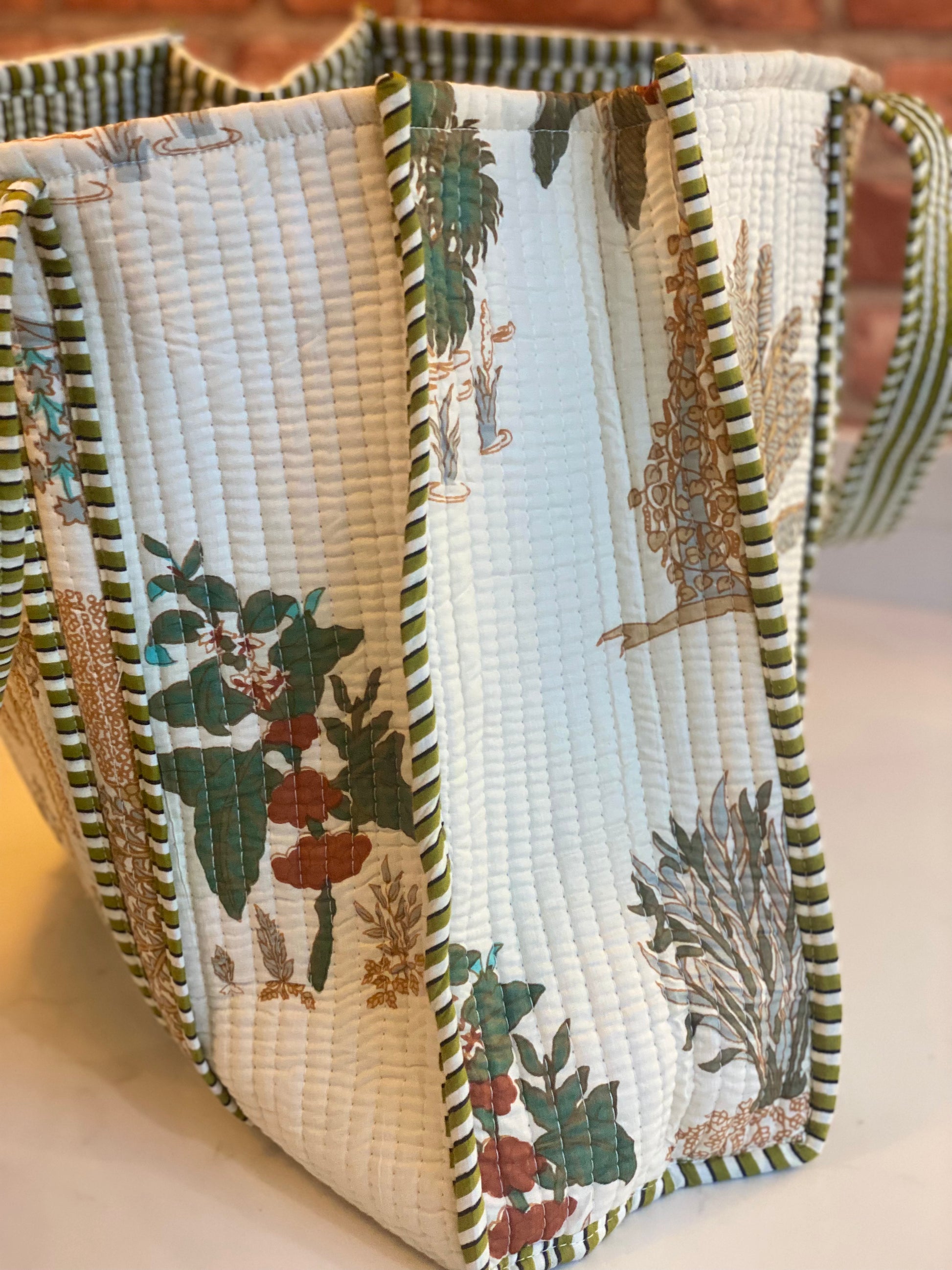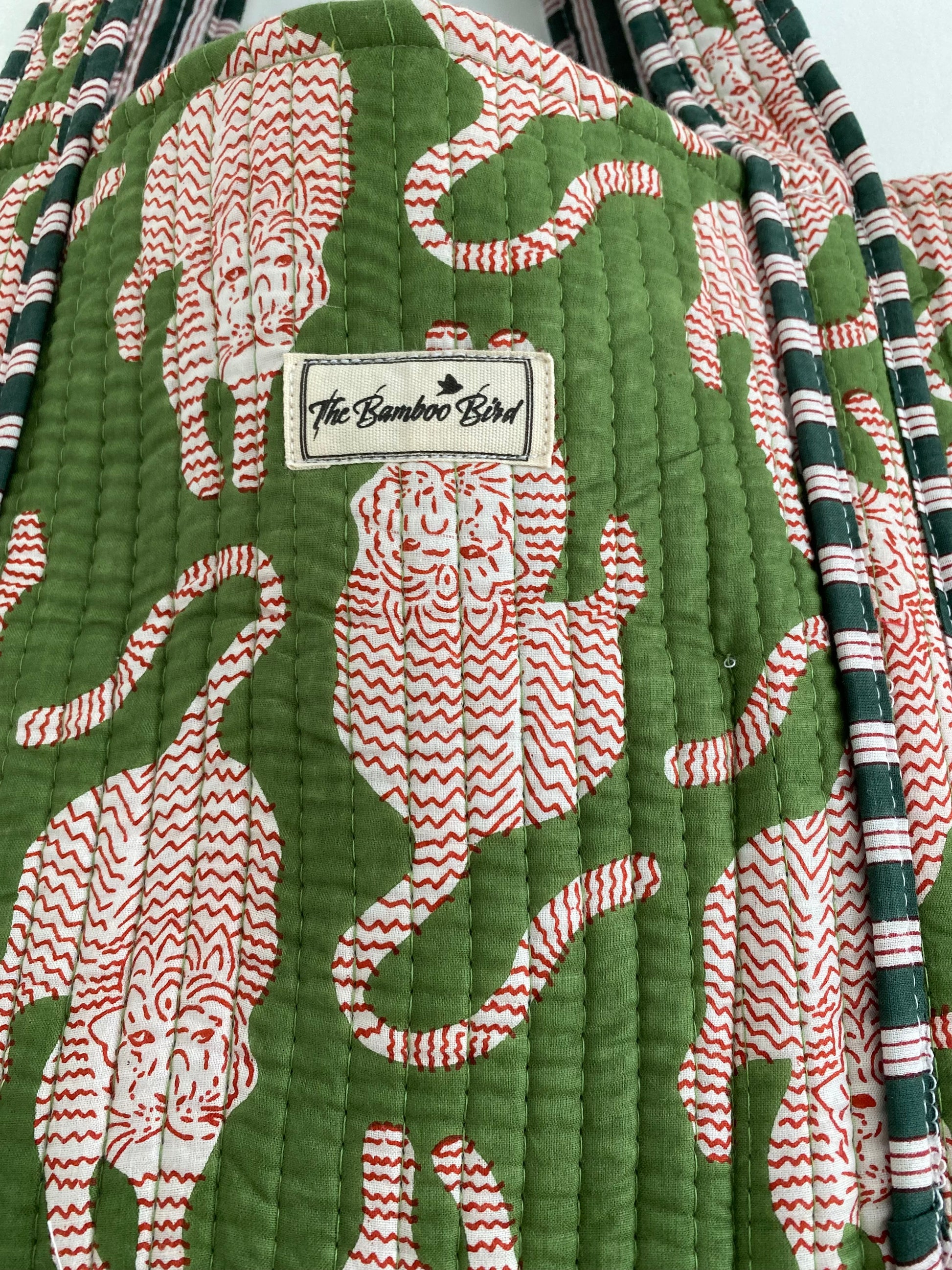 These gorgeous quilted tote bags are perfect for shopping trips or days at the beach making them a must-have holiday essential – lightweight yet sturdy, and available in a striking range of bold, hand block-printed designs.