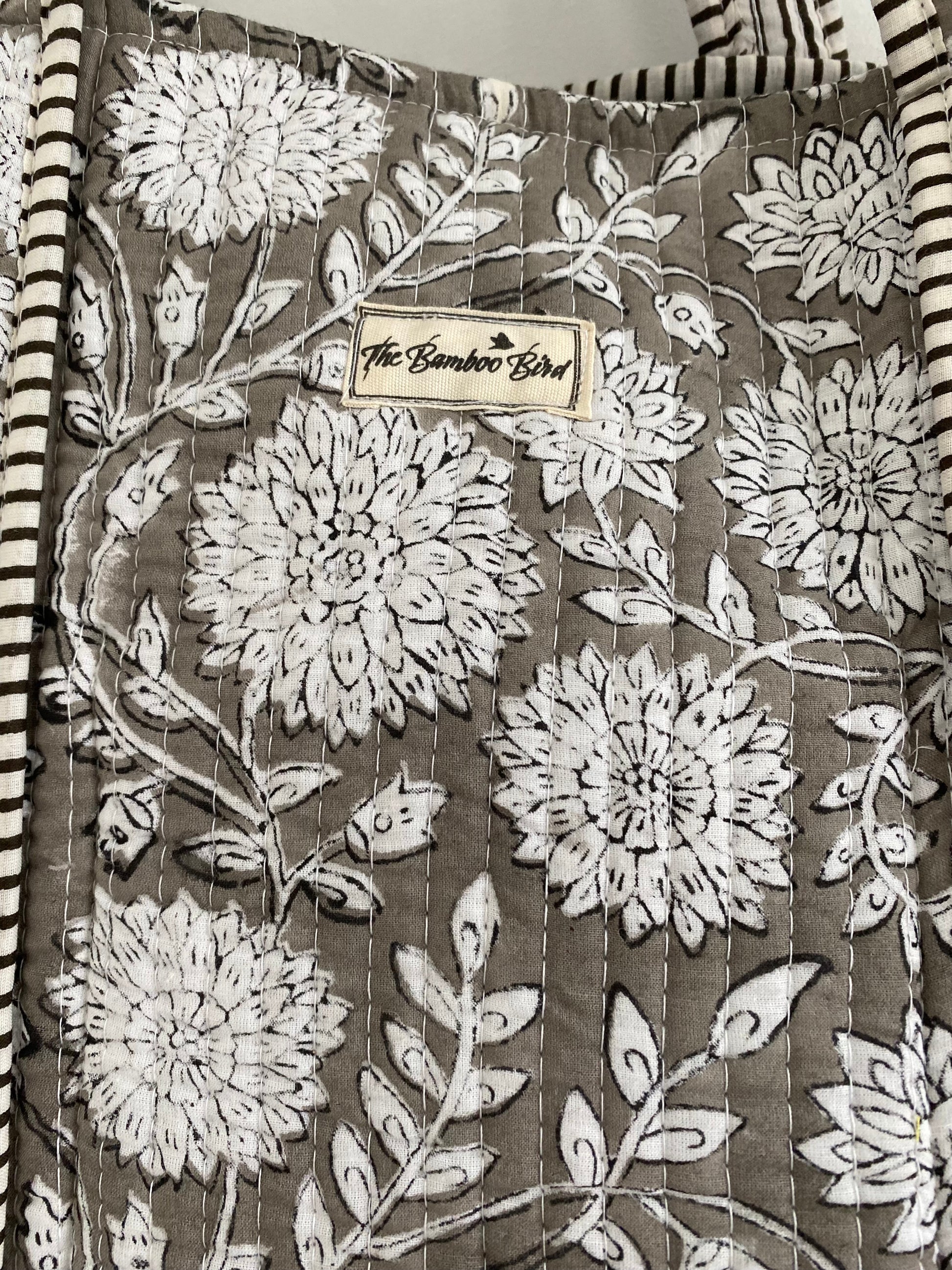 Grey Floral Quilted Tote Bag