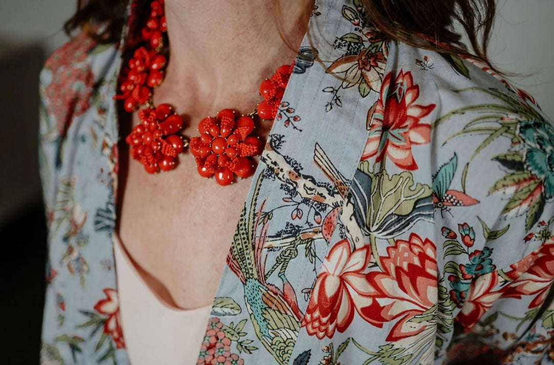 Our pale blue cotton kimono jacket is ideal for those 'jeans and a nice top' occasions. Great paired with a t-shirt or camisole during the summer months and a sweater in cooler weather. The sleeves are full length and are finished with a cuff.