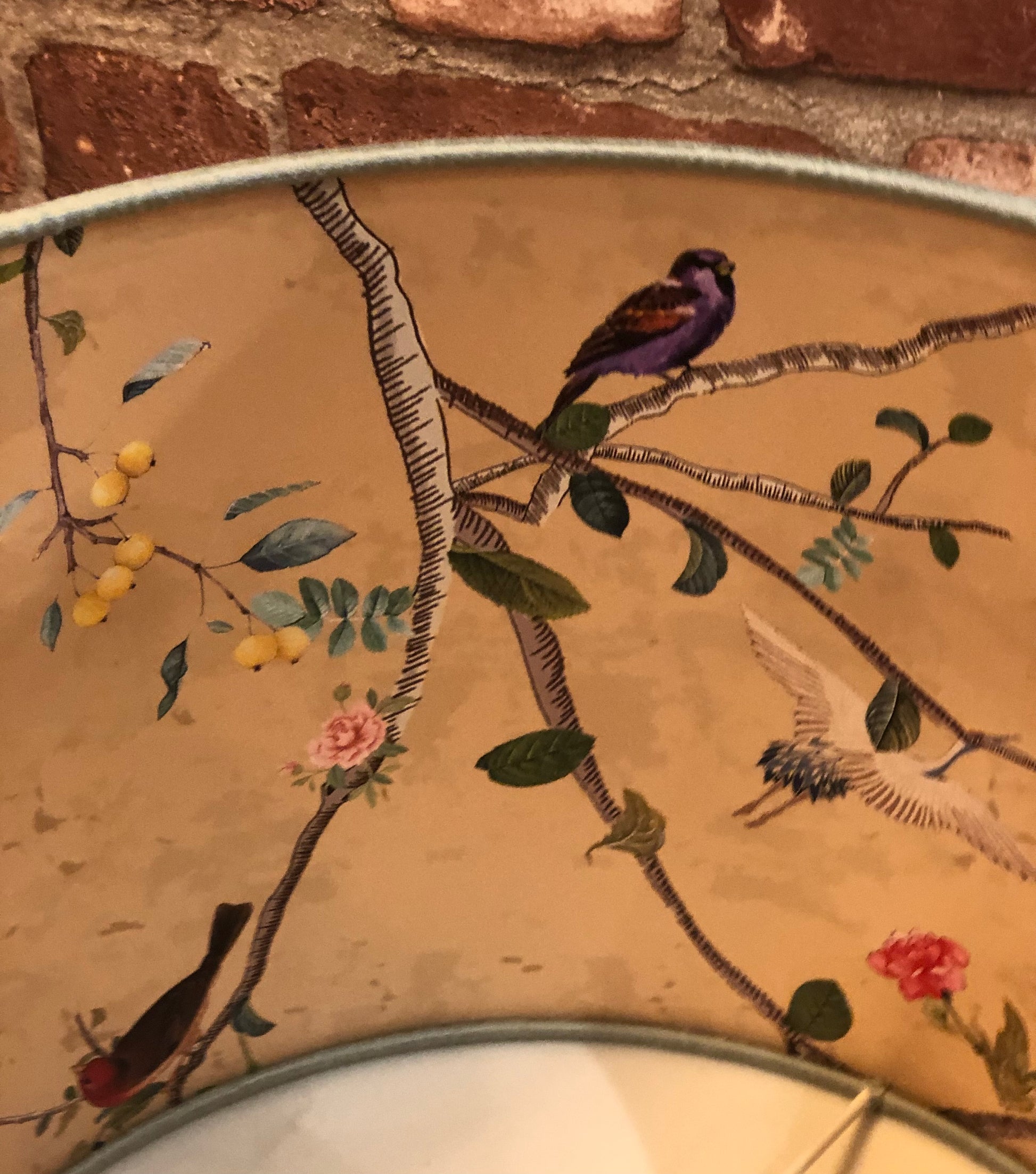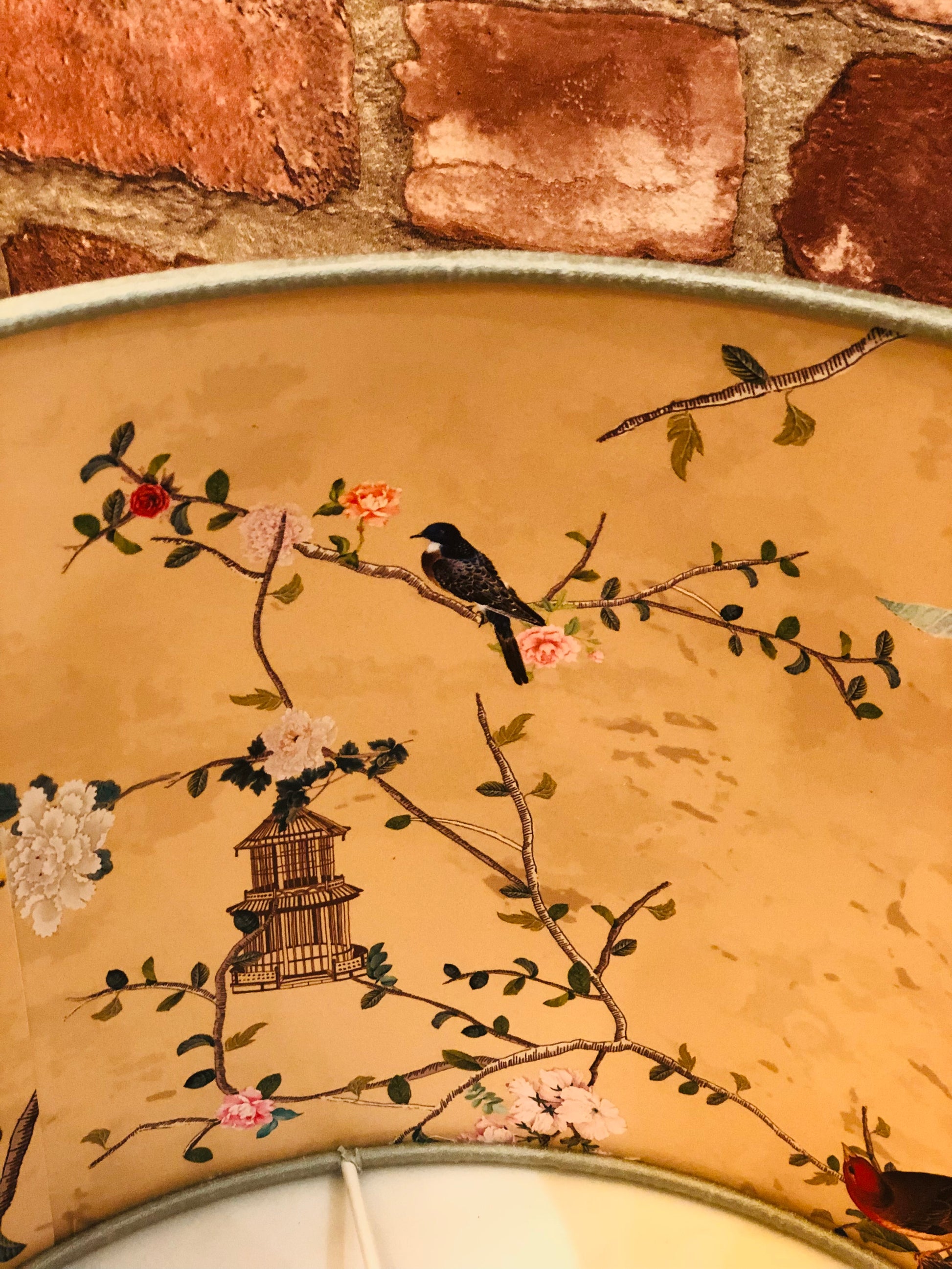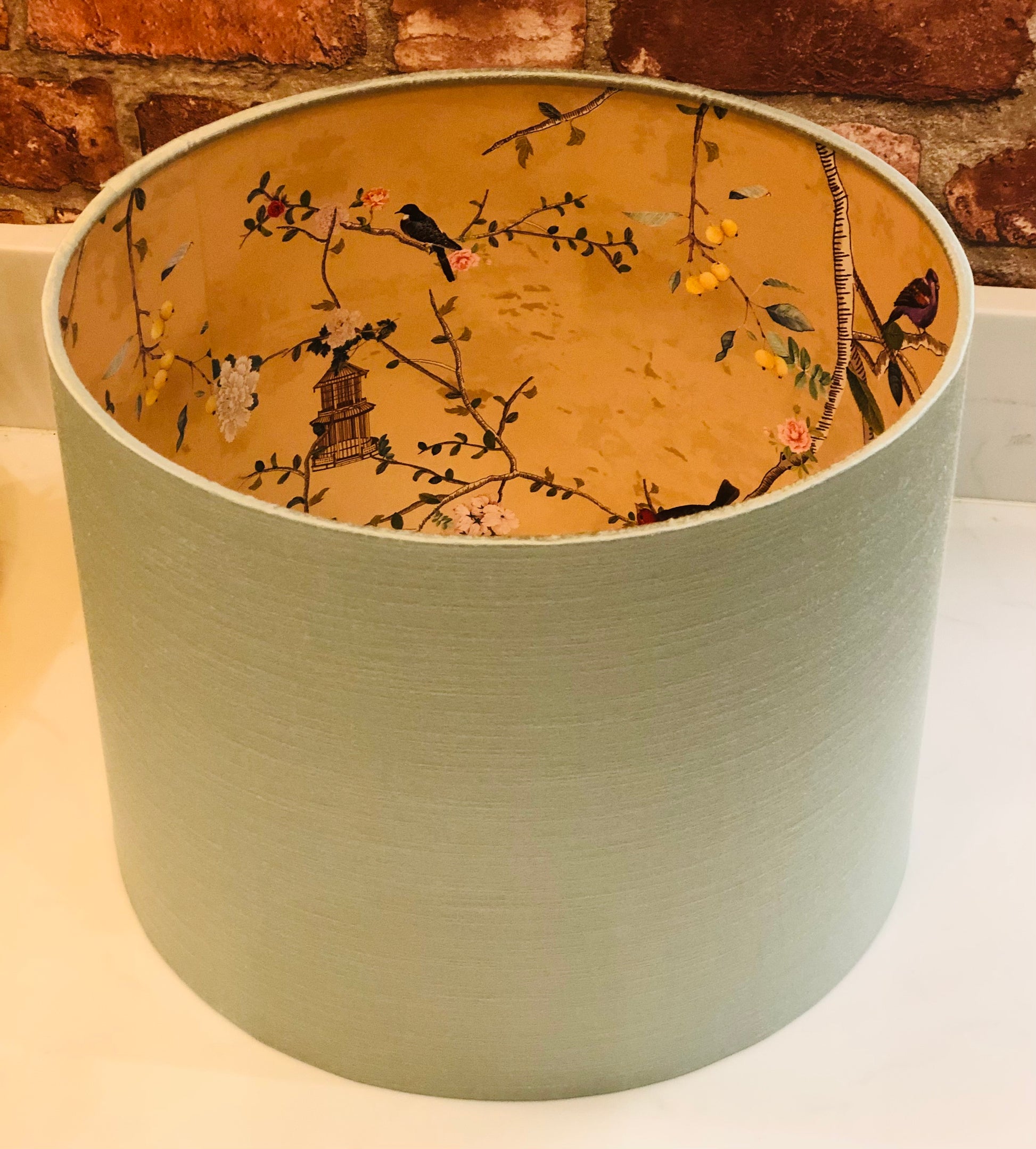 Pale Green Lampshade with Gold Chinoiserie Bird Lining