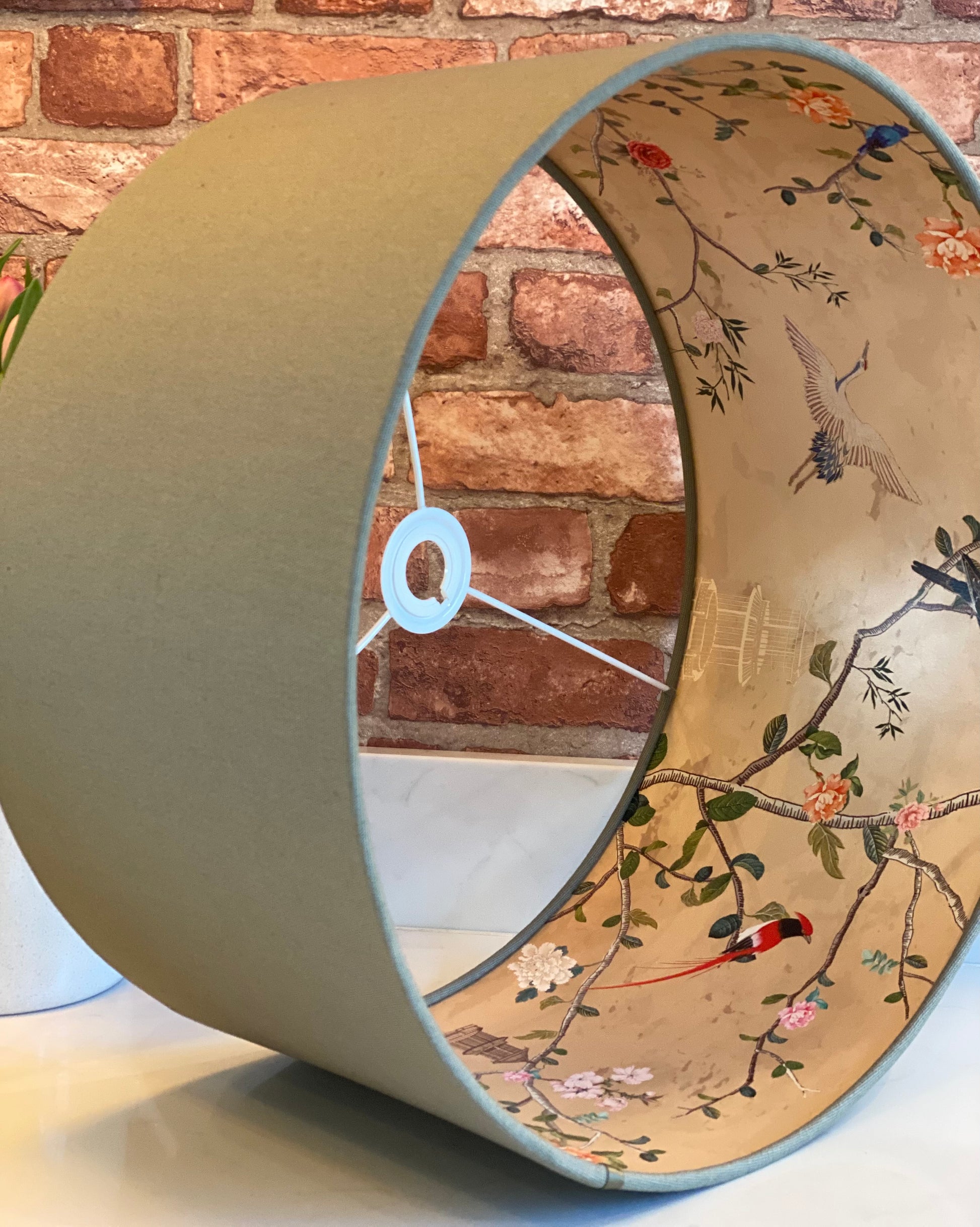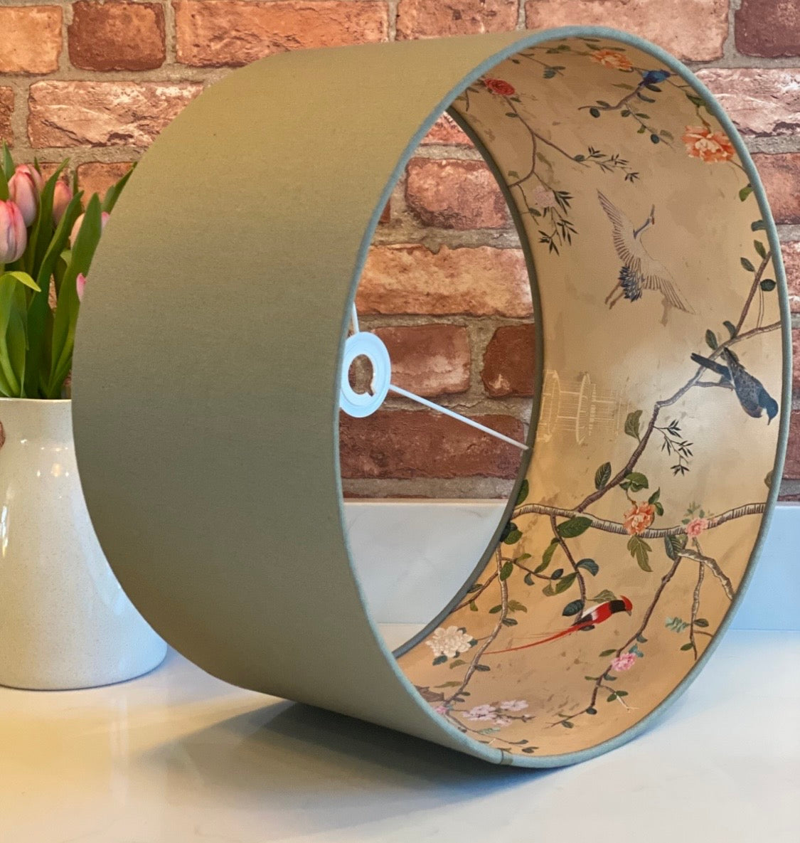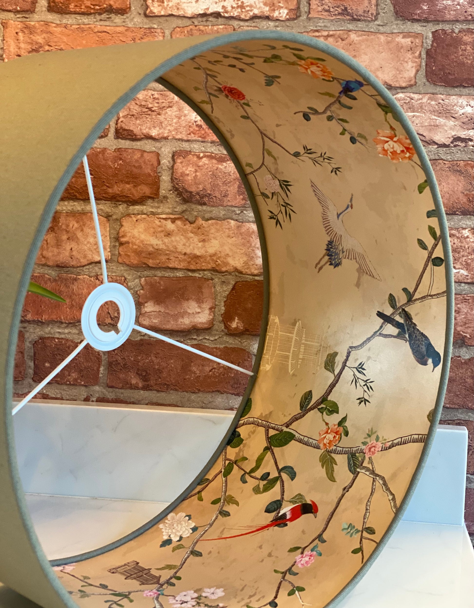 Sage Green Lampshade with Gold Chinoiserie Bird Lining