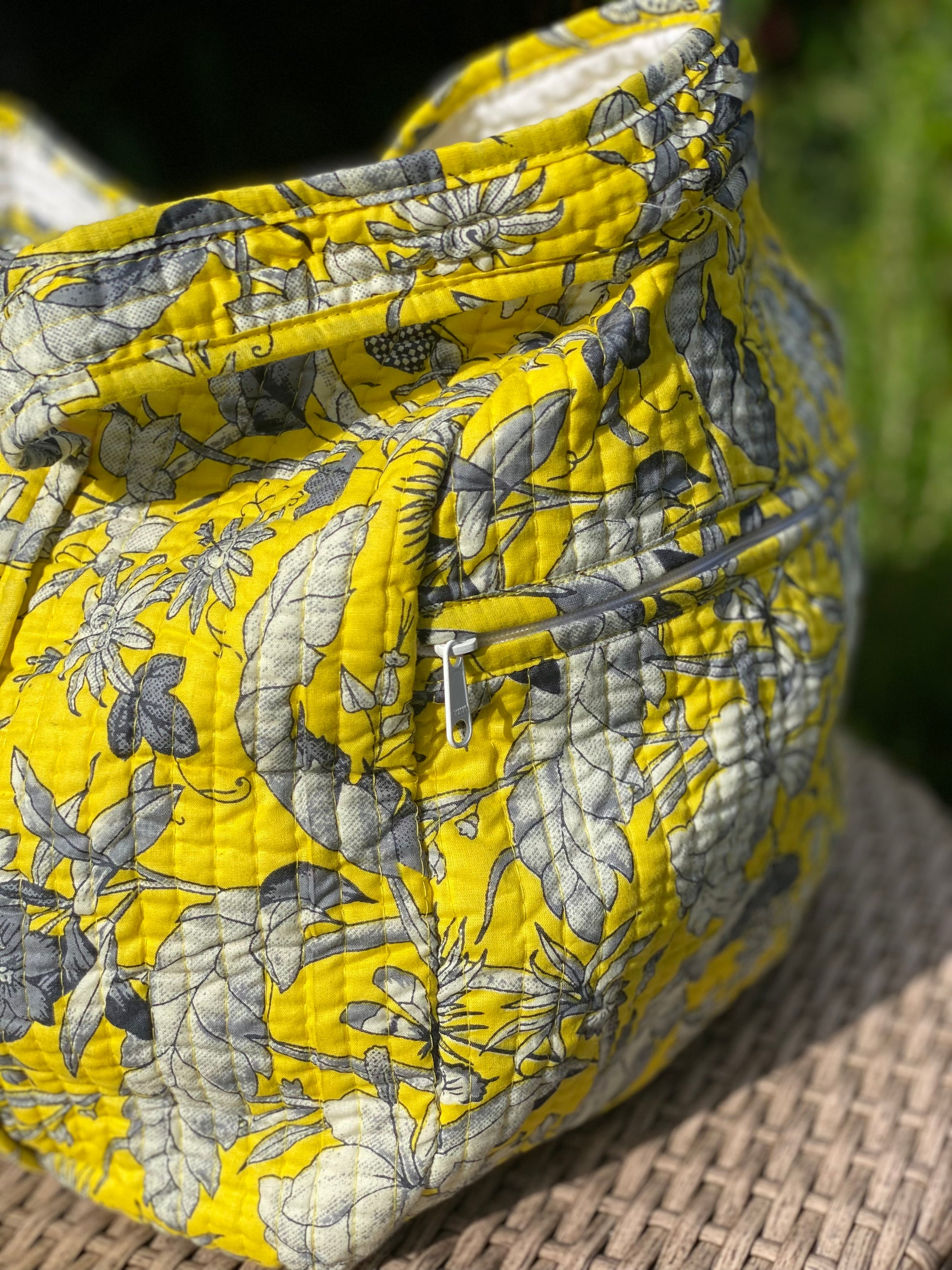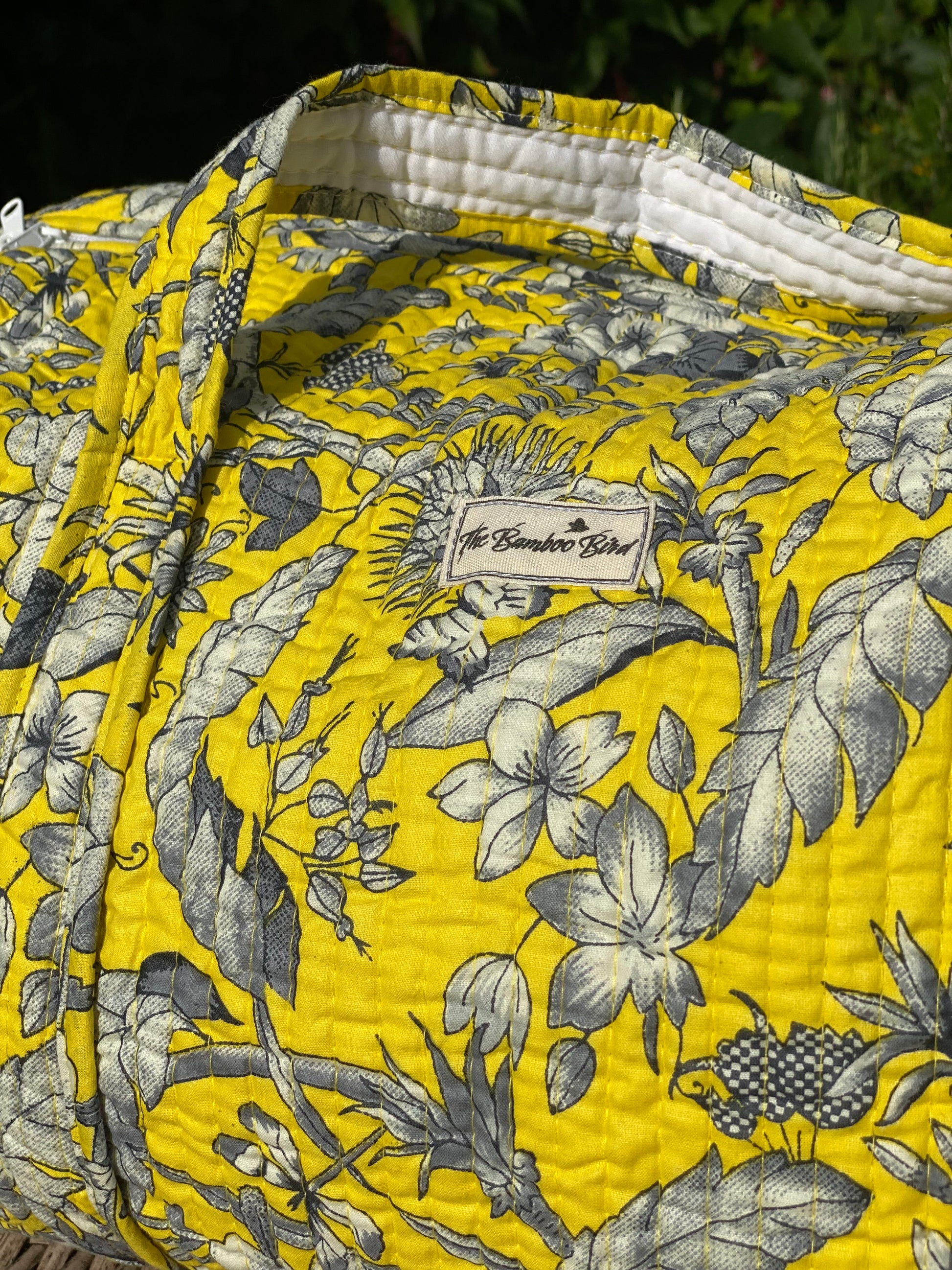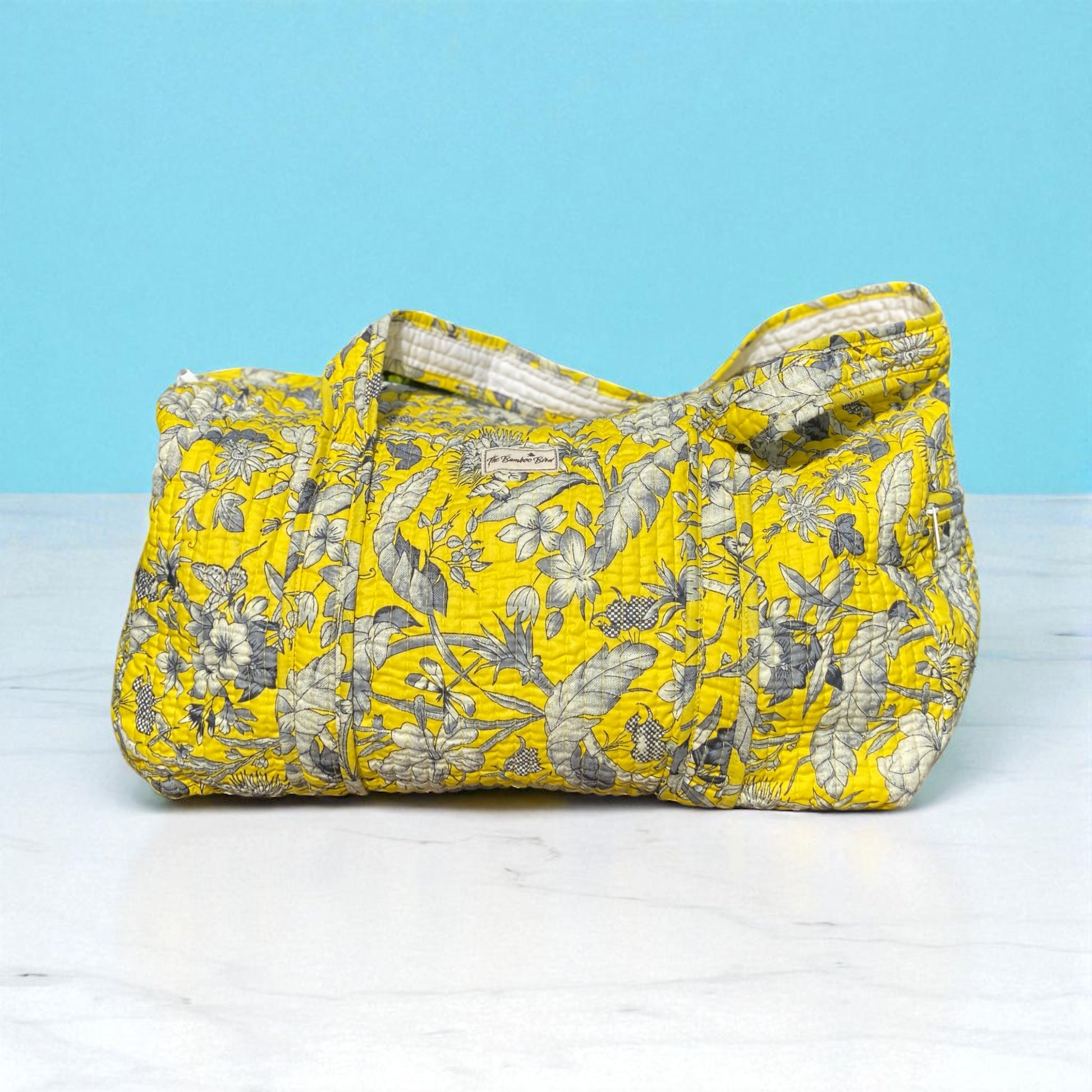 Yellow Floral Quilted Weekend Duffel Bag - Stylish Travel Bag | The Bamboo Bird